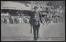 George Burlingame of 1st Mass. Regiment in G.A.R. parade of 29 September 1915. He was dressed in same uniform and carried his old rifle and dusty knapsack that he carried in review of 1865, Washington, D.C.
