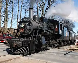 A large number of 2-6-0 locomotives were used in Canada, where they were considered more usable in restricted spaces, being shorter than the more common 4-6-0 Ten-Wheelers. Canadian National (CN) had several.[7] One of them, the CN no. 89, an E-10-a class locomotive built by Canadian Locomotive Company in 1910, has been owned and operated since 1972 by the Strasburg Rail Road in Pennsylvania in the US, in conjunction with the Railroad Museum of Pennsylvania.[8]