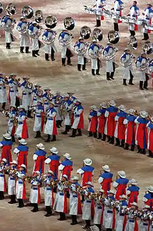 ![]() Athletes leaving the stadium at the end of the ceremony | |