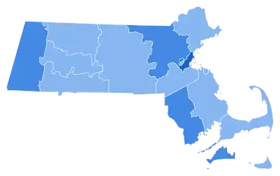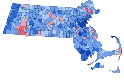 Massachusetts is one of the most reliable blue states in the nation: no Republican has won the state since Ronald Reagan in 1984. The 2000 presidential election featured Democratic United States Vice President Al Gore versus Republican Texas Governor George W. Bush. Despite Bush's tight victory nationwide, Gore handily won Massachusetts, with a 27% margin of victory against George W. Bush who did not actively campaign there. Gore didn't campaign in Massachusetts as well although his wife Tipper and the wife of his running mate Joe Lieberman, Hadassah, held a rally in Lieberman's hometown of Gardner.[1] Gore won every county and congressional district. Massachusetts had been a Democratic-leaning state since 1928, and a Democratic stronghold since 1960, and has kept up its intense level of the sizable Democratic margins since 1996.
