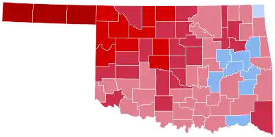 | Oklahoma | 139,078 | 62.34% | 81,590 | 36.57% | 2,443 | 1.09% | 57,488 | 25.77% | 223,111 |