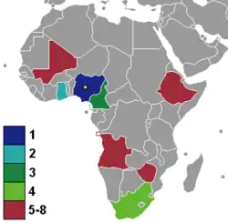 Nigeria18 December 20023 (1991, 1995, 1999)