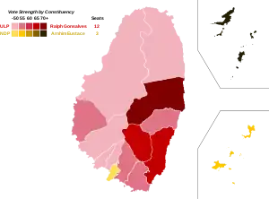 General elections were held in Saint Vincent and the Grenadines on 7 December 2005. The result was a repeat of the 2001 general election with the ruling Unity Labour Party retaining all twelve of its seats and the opposition New Democratic Party retaining its three. However, the NDP saw a nearly 4-point swing in its share of the popular vote.[1] Ralph Gonsalves remained Prime Minister.