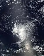 An area of disturbed weather east of the Windward Islands was designated Tropical Depression Six on August 31. Early on September 1, it was named Tropical Storm Felix, and it was upgraded to a hurricane later that day. Tracking generally westward, it rapidly intensified to Category 5, and after fluctuating in strength, made landfall on Nicaragua with 160 mph (260 km/h) winds. At least 133 deaths and more than $50 million (2007 USD) in damage have been attributed to Felix.[35] With Felix, the 2007 Atlantic hurricane season became the first known to include two hurricanes making landfall at Category 5;[36] hurricanes Irma and Maria made landfall at Category 5 intensity during the 2017 Atlantic season.[37]