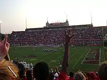 Former Southwest Conference and current Conference USA members, the SMU Mustangs faced the Cougars in their twenty-fourth meeting.[30] The first game between the two teams took place during the 1975 season when Houston joined the Southwest Conference, and the teams have regularly played each other since. The Cougars led the series 13-9-1, including a 38–28 win against the Mustangs last season. This season, June Jones, former Hawaii Warriors head coach took the same position at SMU.[31] At Hawaii, Jones had gained national attention after the Warriors went undefeated, and were invited to the 2008 Sugar Bowl.[32] After the win, the Cougars moved up in the Conference USA standings to tie for first with an undefeated Tulsa in their division.