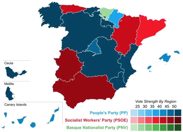 3. 1 2 Results for EdP, not including Andalusia and Asturias (2.40%, 1 seat), Galeusca in Galicia (0.91%, 0 seats) and Aralar (0.13%, 0 seats) in the 2004 election.