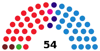 Last election 24 seats, 41.2% 25 seats, 43.5% 2 seats, 5.2%[lower-alpha 2]