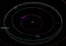 Orbit diagram of 2009 SH2 and the inner planets