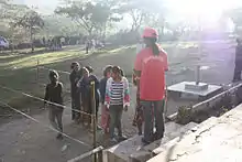 The Australia Timor-Leste Friendship Network confirmed free and fair elections in East Timor. There were only minor technical problems.[49] The American International Republican Institute also attested to a peaceful election in East Timor, which remained without major incidents and generally met international standards. Only minor irregularities were registered, but these are said to have had no effect on the election results. For example, not every polling station was checked before casting the ballot to ensure that the voter did not already have an ink-stained finger, which would indicate that the vote had already been cast. In some polling stations, there were irritations regarding the positioning of voting booths, and election observers sporadically registered voters who had not yet reached the minimum age of 17.[50] UN Secretary-General Ban Ki-moon also congratulated East Timor for the peaceful conduct of the elections.[51] Praise also came from the European Union and the Community of Portuguese-Speaking Countries.[52] The Friendship Observer Mission (FOM), which consisted of various East Timorese and foreign members, listed several problems and violations in its report. This concerned, in addition to the Frenti-Mudança's campaign with paid election workers, lack of checking for stained fingers of voters (the sign that they had already voted) and the appearance at election rallies of men in traditional dress wielding traditional weapons such as spears and surik. While FOM recognises that these are part of the country's folklore, they see a fundamental problem with the appearance of armed people in election campaigns. The Chefe de Suco of Lelaufe announced at an election rally in Lifau that he would force all parties in his Suco to remove all banners and party flags that were not from the CNRT.[34] In the two polling stations in Lelaufe, the CNRT only received 32.63% and 44.20%.[53]