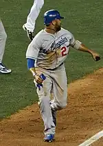 The Dodgers re-signed outfielder Juan Rivera to a one-year contract with a 2013 option.[16] They filled two of their open spots in rapid succession on November 15 by signing second baseman Mark Ellis to a two-year contract[17] and backup catcher Matt Treanor to a one-year contract.[18] The Dodgers signed infielder Adam Kennedy to a one-year contract on December 1 to provide some infield depth[19] and they signed veteran starting pitcher Chris Capuano to a two-year contract on December 2 to fill the void left by Kuroda's departure.[20] They added to their bench on December 5 by signing veteran utility player Jerry Hairston Jr. to a 2-year contract.[21] The Dodgers finished their rebuilding of the rotation on December 8 by signing Aaron Harang to a 2-year contract, with a vesting option.[22] The Dodgers chose to re-sign relief pitcher Mike MacDougal, agreeing to a one-year contract (including a 2013 option) with him on January 5.[23] They added another relief pitcher on February 3 by signing veteran Todd Coffey to a one-year contract.[24]