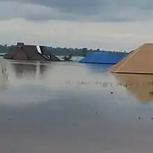 In late July 2012, at least 39 people were killed due to flooding in the central Nigerian Plateau State.[13] Heavy rainfall caused the Lamingo dam to overflow near Jos, sweeping across a number of neighbourhoods in Jos, and approximately 200 homes were submerged or destroyed.[13] In addition, at least 35 people were missing, while Manasie Phampe, the head of the Red Cross in the state, announced that relief efforts were ongoing. The floods left 3,000 people homeless, many of whom are taking refuge in government buildings in Jos.[14]