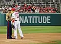 In the third inning of the September 28 game, center fielder Denard Span doubled to set a single-season record for hits by a Washington Nationals player with his 184th hit of the season.[49][53]