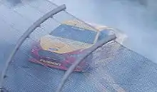 Kyle Busch was the fastest in the third practice session with a time of 44.826 and a speed of 200.776 mph (323.118 km/h).[26] During this session, there was a four car wreck on the backstretch that involved Michael Annett, Jeb Burton, Denny Hamlin and Danica Patrick.[27] It started when Hamlin pulled out of line and Patrick tried to follow him, but made contact with the right-front corner of Hamlin's car when she over-corrected and hit the wall. Michael Annett tried to go high around Patrick on the outside when he got turned by Jeb Burton. Patrick, Annett and Burton all switched to backup cars.[27] After the incident, Patrick stated that her car "sort of just started turning toward the right, the back end was coming around and it swapped ends" and that Hamlin was trying to "make a third lane in the middle and it felt like it must have caught my bumper".[27] Hamlin felt that Patrick had intended to block his path, stating that a driver has "to give a little bit of extra room in practice" and that if he "had to guess, she probably saw in her mirror that I was going down there and tried to stay in front of me".[27]