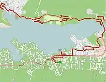 After descending from the climb, the riders had to deal with a change of wind direction on the flatter roads, and LottoNL–Jumbo unsuccessfully tried to create echelons.[33] As the riders reached the last intermediate sprint in Arroyo Grande – again won by Daniel – with 20 miles (32.2 kilometers) to go, the break held a 35-second lead. The escapees started a flurry of attacks, with Daniel the last to be caught with 10 miles (16.1 kilometers) to cover.[33] With 5 miles (8.0 kilometers) left, the peloton was spread across the road, trying to sort out their lead-out trains ahead of a technical finish, with three 90-degree corners in the last kilometer and a short, steep rise right before the line. Daniel Oss (BMC Racing Team) tried his luck under the red kite, but was joined with about 100 meters (330 feet) remaining as Sagan powered his way past him to claim his second victory of the season, followed by Wouter Wippert (Drapac Professional Cycling) and Mark Cavendish.[34] With a 10-second bonus for his victory, Sagan reduced Skujiņš' overall classification lead to 22 seconds.[35]