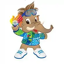 The games' mascot is a baby mammoth, a symbol of Russian north that represents beauty and strength of Siberia and is described to have kind eyes crystal clear like rivers and lakes of Ugra and open as Russian soul.[4] The name of the mascot was chosen as "Spartak" from an online voting process.[5][6]