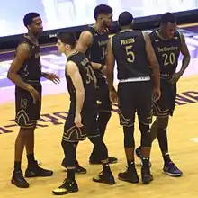 The starting 5 (left to right) Vic Law, Bryant McIntosh, Sanjay Lumpkin, Dererk Pardon, and Scottie Lindsey