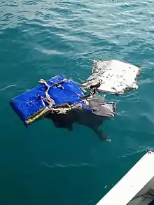 Mutilated bodies and a full body were found near the crash site at 17:55 local time along with an oil slick at a depth of 24 metres (79 ft).[13][14] The following day another three ships, from the Indonesian customs service, joined the operation.[15] The search and rescue operation became an international effort, as Singapore joined the operation with an aircraft and a helicopter.[16] Investigators from National Transportation Safety Committee (NTSC) also joined the search. According to the head of the National Search and Rescue Agency, at least 300 personnel and 15 ships were involved in the search and rescue operation.[17]