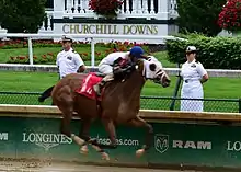 It was also the second Derby win for Velazquez, who had previously won in 2011 with Animal Kingdom.[5] "This is the best horse Todd and I have ever come to the Kentucky Derby with", he said. "I got a good position early and then he relaxed. When we hit the quarter pole, I asked him and he responded. He did it himself from there."[23]