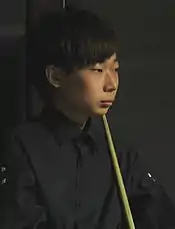 The first round saw few upsets, with most of the highest ranked players progressing.[9] However, Ding Junhui (second seed) was defeated by world number 130 Leo Fernandez 6–5, despite having led 5–1, and having a chance to win the match in frame 7.[10] Fernandez had only recently returned to the professional circuit after serving a 15-month ban for a corruption charge.[11] Elsewhere, Ali Carter (11th seed) lost 6–2 to Jimmy White (118). Despite Carter having been ahead 2–1, White won the next five frames to progress.[12][13] Another upset saw Lyu Haotian (104) defeat Anthony Hamilton (25) 6–1.[14]