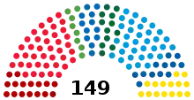 There were 149 seats, the same number as in 2014.[3] The Social Democrats supplanted the Moderates as the largest party.[1] However, after protracted negotiations, a majority Blue-Green government was formed between the Alliance parties and the Green Party.[4] Previously, the Alliance parties had a majority since the 2014 regional elections, but losses to the Sweden Democrats necessitated the formation of a cross-bloc coalition with the Greens to gather a governing majority, as the Alliance parties wished to avoid relying on the Sweden Democrats.[5]
