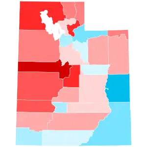 Prior to the election, all 14 news organizations projected Utah as leaning towards Trump, or a safe red state. Throughout the campaign, Trump did not exceed 60% in a single poll conducted. Some polls even showed the president leading by single digits against Biden, likely indicating a closer than normal contest in this traditionally Republican stronghold. In past elections, Utah has often given the GOP nominee one of their largest victories in the nation, having awarded George W. Bush and Mitt Romney over 70% of the vote in 2004 and 2012, respectively. However, Trump only won Utah with 58.1% of the vote and a margin of 20.5%, which although an improvement on his 18.1% margin over Hillary Clinton in 2016, is still relatively narrow compared to past Republican nominees. He performed strongly in rural areas, as well as in some larger counties like Utah (Provo), Davis (Farmington), and Weber (Ogden). Trump improved over his 45.5% plurality win in 2016, due in part to the lack of a strong third party presence, as Evan McMullin, who endorsed Biden,[4][5] earned 21.5% of the vote that year. The election was far more of a two-party contest in 2020, with third parties receiving 4.2% of the vote, compared to 27% in 2016. Despite this, the Associated Press reported a less partisan and more cooperative cultural environment in Utah compared to other states during the election.[6]