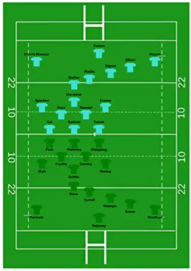 | 13:00 GMT (UTC±00:00) | Try: Parsons 17' m Moloney 26' c Delany 33' m Djougang 42' c Penalty try 80' +1 Con: Keohane (2/4) 27', 44' |