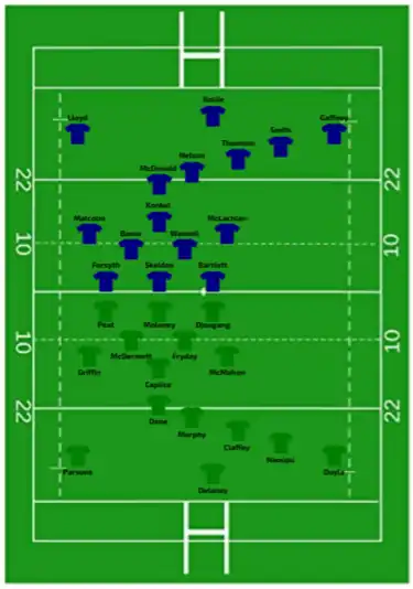 | 12:45 GMT (UTC±00:00) | Try: Hunter 4' c Dow 14' m Breach 27' m Fleetwood 40' m McKenna 59' m Con: Scarratt (1/5) 4' |