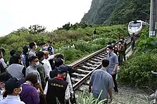 The route involved runs along the mountainous east coast of Taiwan, passing by the Taroko National Park and the Taroko Gorge, the namesake of the express and a popular destination for the long weekend.[7][18][21] The Qingshui Tunnel is a pair of single-tracked tunnels that cut through Qingshui Cliff. In April 2019, the TRA began construction to improve the slope stability near the north end of the tunnel by constructing a rock shed over the western track.[22][23] At the time of the accident, construction was nearly complete.[22][lower-alpha 3]