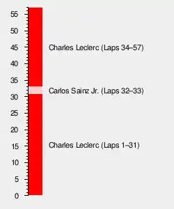 2. As a team, Ferrari achieved the grand slam due to Charles Leclerc's teammate Carlos Sainz Jr. being the only other driver to lead a lap. It was Ferrari's first team grand slam since the 2010 Singapore Grand Prix.[6]
