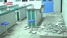 Damage to the walls of the Taiping Middle School in Lushan County.