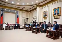 Taiwanese foreign minister Joseph Wu received Pelosi and her delegation.[5] Shortly after her arrival, Pelosi said that her visit was a sign of the United States' "unwavering commitment to supporting Taiwan's vibrant democracy."[1] Pelosi's trip included a visit to the Legislative Yuan and a meeting with President Tsai Ing-wen before her departure for South Korea.[6]