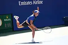 - ↑ "US Open: Iga Swiatek dethroned by Jelena Ostapenko in fourth round in New York". skysports.com. 4 September 2023. Archived from the original on 4 September 2023. Retrieved 4 September 2023.