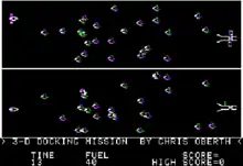 3-D Docking Mission is a simulation game for the Apple II written by Chris Oberth.[1] The game was published by Programma International and The Elektrik Keyboard of Chicago, Illinois in 1978.[2]