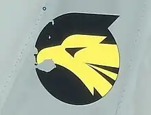 The squadron's aircraft carry a golden eagle as their tail marking, inside a stylized "6" indicating the 6th Air Wing. The golden eagle can be found in the mountains near Komatsu air base, and is also the prefectural bird of Ishikawa.[2]