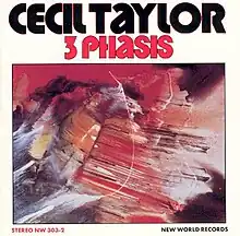 3 Phasis is an album by Cecil Taylor recorded in April 1978 and released on the New World label. The album features three performances by Taylor with Raphe Malik, Jimmy Lyons, Ramsey Ameen, Sirone and Ronald Shannon Jackson. The album was recorded during the same sessions that produced the Cecil Taylor Unit.[4]