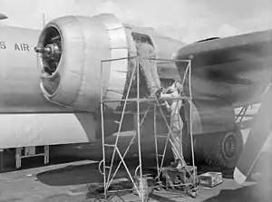 ![]() Maintenance on a B-29 Superfortress at Kadena Air Base | |