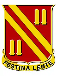 The 4th Battalion, 42nd Field Artillery Regiment (United States), nicknamed the Straight Arrows, was a field artillery battalion in the United States Army. The Regimental motto is Festina Lente ("Make Haste, Slowly").