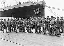 Originally raised for service during World War I as part of the all volunteer Australian Imperial Force (AIF), the 5th Machine Gun Battalion was one of five such units raised as part of the AIF during the war.[1] The battalion was formed in March 1918 from Australian Machine Gun Corps personnel, and consisted of four machine gun companies – the 8th, 14th, 15th, and 25th – which had previously existed as independent companies assigned at brigade and divisional level.[2] Major Alan Herbert Wright served as the battalion's first commanding officer, in an acting capacity until Lieutenant Colonel Thomas Roy Marsden arrived in April.[3][4]