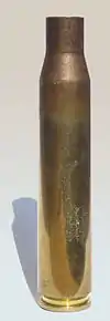 Examples of 8×68mm S based wildcats are the relatively well known American 7 mm and .30 caliber Boo Boo and 7 mm and .30 HV wildcats. The Boo Boo wildcats were developed for long range target shooting where participants usually handload their ammunition. Several 1,000 yard shooting competitions have been won with Boo Boo wildcats. A wildcat from Europe that uses the 8×68mm S as its parent case is the .30 Kovacs.[10] It was designed in 1996 by Stefan Kovács, Austria-7041 Wulkaprodersdorf. The .30 Kovacs has much more powder-room (longer L2, wider P2, 40 degree Ackley-shoulder) then its parental case. It falls powder-room-wise between the .300 Winchester Magnum and .300 Weatherby Magnum but has energy and velocity falling between .300 Weatherby Magnum and the .300 Remington Ultra Magnum. This wildcat cartridge will be fitted only by Büchsenmachermeister Egon Kriebernegg.[11] Another European wildcat based on the 8×68mm S is the .300 Styria Magnum.[12] It was developed by Ing. Michael W. Mayerl from the Styria Arms company[13] in Austria in 2005 as a reliable beltless high power cartridge for Mauser 98 rifles. The parent case is shortened to 65 mm (2.559 in) case length and necked down to 7.82 mm (.308 in) calibre. The shoulder angle is the same as the 8×68mm S so fire forming is not necessary and no new headspace gages are needed. The development goal of this cartridge was to get a highly reliable .30-calibre magnum cartridge that fits in the standard Mauser 98 action without any modification of the feeding lips, follower, feeding ramp or magazine length. Only the bolt face must be opened to a diameter of 13.3 mm (0.524 in). The throat of the .300 Styria Magnum is similar to the proven .308 Winchester and short enough to seat the bullets to the lands without exceeding the maximum length of 84.8 mm (3.339 in) to fit the original Mauser 98 magazine. The thick-walled 8×68mm S parent case manufactured by RWS can handle a usage piezo pressure up to 460 MPa (66717 psi).[14]