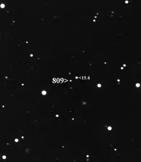![]() Asteroid 809 Lundia (apparent magnitude 16.6) near a mag 15.6 star | |