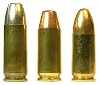 ![]() 9×23mm Winchester (left) compared with 9×21mm (center) and 9×19mm Parabellum (right) | ||||||||||||||||||||||||