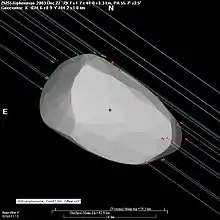 - 1 2 3 4 Durech, Josef; Kaasalainen, Mikko; Herald, David; Dunham, David; Timerson, Brad; et al. (August 2011). "Combining asteroid models derived by lightcurve inversion with asteroidal occultation silhouettes". Icarus. 214 (2): 652–670. arXiv:1104.4227. Bibcode:2011Icar..214..652D. doi:10.1016/j.icarus.2011.03.016.