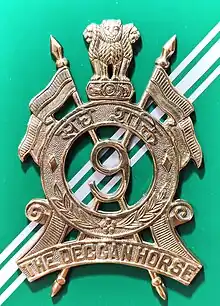 The 9th Royal Deccan Horse can trace its formation to 1790 when it was called Asif Sah's Irregular Cavalry. Two regiments were raised for service under the Nizam of Hyderabad in Berar, who was allied with the British East India Company.[1]