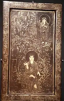 While it is held by some in the Mahāyāna tradition that the Buddha taught the Aṣṭasāhasrikā, and the other Mahāyāna sūtras during his lifetime, some legends exist regarding its appearance in the world after the Buddha's parinirvāṇa. One such legend is that Mañjuśrī Bodhisattva came to the house of King Candragupta (321–297 BCE), preached, and left the Aṣṭasāhasrikā there.[15] Another, related by Haribhadra (8th C), is that while the Śrāvakayāna teachings were entrusted and preserved by Ānanda, the Mahāyāna sūtras, and in particular the "Prajñāpāramitā Sūtra," were entrusted to Vajradhāra residing in the Aḍakavatī Heaven.[16] Finally, the legend which has the most currency in East Asia, is that Nāgārjuna was gifted the sūtra from the king of the nāgas after seeing Nāgārjuna's resolve to obtain the Mahāyāna sūtras of the Buddha that were missing on earth.[17]