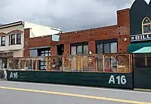 The original A16 in San Francisco is located in the Marina District. The Oakland location is in the Rockridge neighborhood.[2] The San Francisco restaurant's dining room is long and narrow. In the middle of the restaurant is an open kitchen.[3] There is bar seating in the front and patio seating in the back.[4]