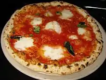 A16's menu focuses on the cuisine of Campania, Italy.[2] A16 is well known for its wood-fired pizza. Other dishes include braised octopus, fettuccine made with black pepper served with pig's trotters, sirloin steak and goat chop. Main courses come with a side dish of the diners choice, including cannellini beans or broccoli with calabrian chiles and colatura di alici. For dessert, the restaurant serves a chocolate tart with sea salt.[3] The menu offers many local ingredients from the San Francisco Bay Area, including coffee from Blue Bottle Coffee Company.[2] The San Francisco location offers three-course lunch meals for $20. During lunch time, the kitchen staff can be seen butchering fresh animal meat for dinner service, including pig, rabbit, goat, chicken, and duck.[6]