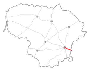 The A3 highway is a highway in Lithuania (Magistralinis kelias). It runs from Vilnius to the Belarus border, reaching Minsk. The length of the road is 33.88 km (21.05 mi).