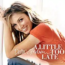 "A Little Too Late" is a song written by Gary Barlow, Delta Goodrem, and Eliot Kennedy, produced by True North Records for Goodrem's second album, Mistaken Identity (2004). It was released as the album's fourth single in Australia on 30 May 2005 as a CD single and reached number 13 on the ARIA Singles Chart.