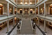 Filming of the museum scenes primarily took place at the Georgia State Capitol in Atlanta across two days. The production team created a fake glass floor made of plexiglass to use at the base of the building's staircase for some of the scenes.[4][5]