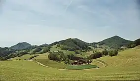Aargau Jura Park (Jurapark Aargau) is located north of Aarau, between the rivers Aare and Rhine, in the Swiss canton of Aargau. It straddles the border between Jura and Basel. It spans 241 square kilometres (93 sq mi) and reaches up to 350 metres (1,150 ft) above the valley floor.[1] The park is mainly located on the Jurassic Plateau, between Frick and Villigen, and also encompasses the Aargau Jura mountains and valleys. The northern area includes sparse pine forests, fruit orchards, rocky steppes, dry meadows and terraced vineyards, while the southern region fosters forests and wildlife.[2] It was declared a regional nature park of national importance in 2012 by the Federal Office for the Environment.